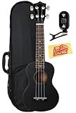 Okina UK100 Soprano Ukulele Bundle with Polyfoam Case, Tuner, and Polishing Cloth - Black